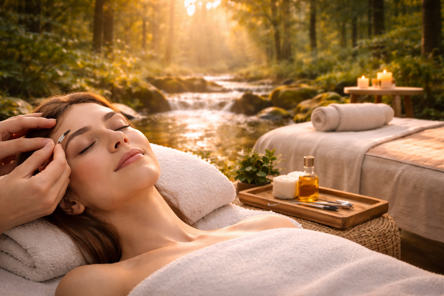 Avslutas med en lätt brynmassage som ger ett lyft både för utseendet och en stunds stillhet i vardagen.